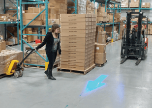 This intuitive system gives pedestrians advanced warning while also alerting them to their position relative to the forklift.