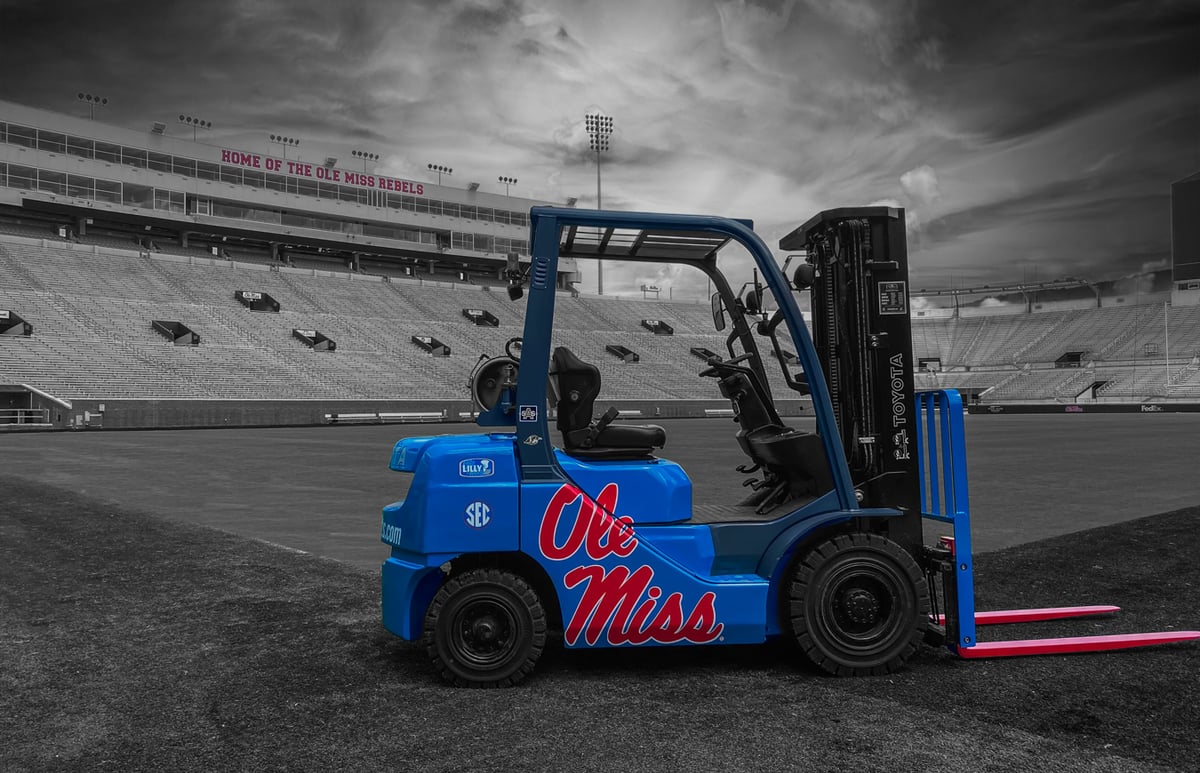 Business marketing 101 - An eye-catching paint job helps spread the word about your company. What if every person told someone they know, “I saw the coolest thing today when I was at [your business name]. They had a forklift/golf cart/aerial lift with really cool branding!”